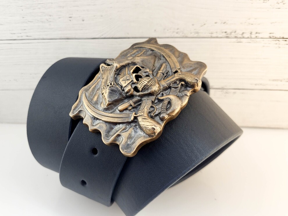 Познакомьтесь с авторской пряжкой «Веселый Роджер» — символом морской романтики, свободы и духа авантюризма. Эта массивная бронзовая бляха — не просто украшение, а отражение бунтарского характера и тяги к приключениям.