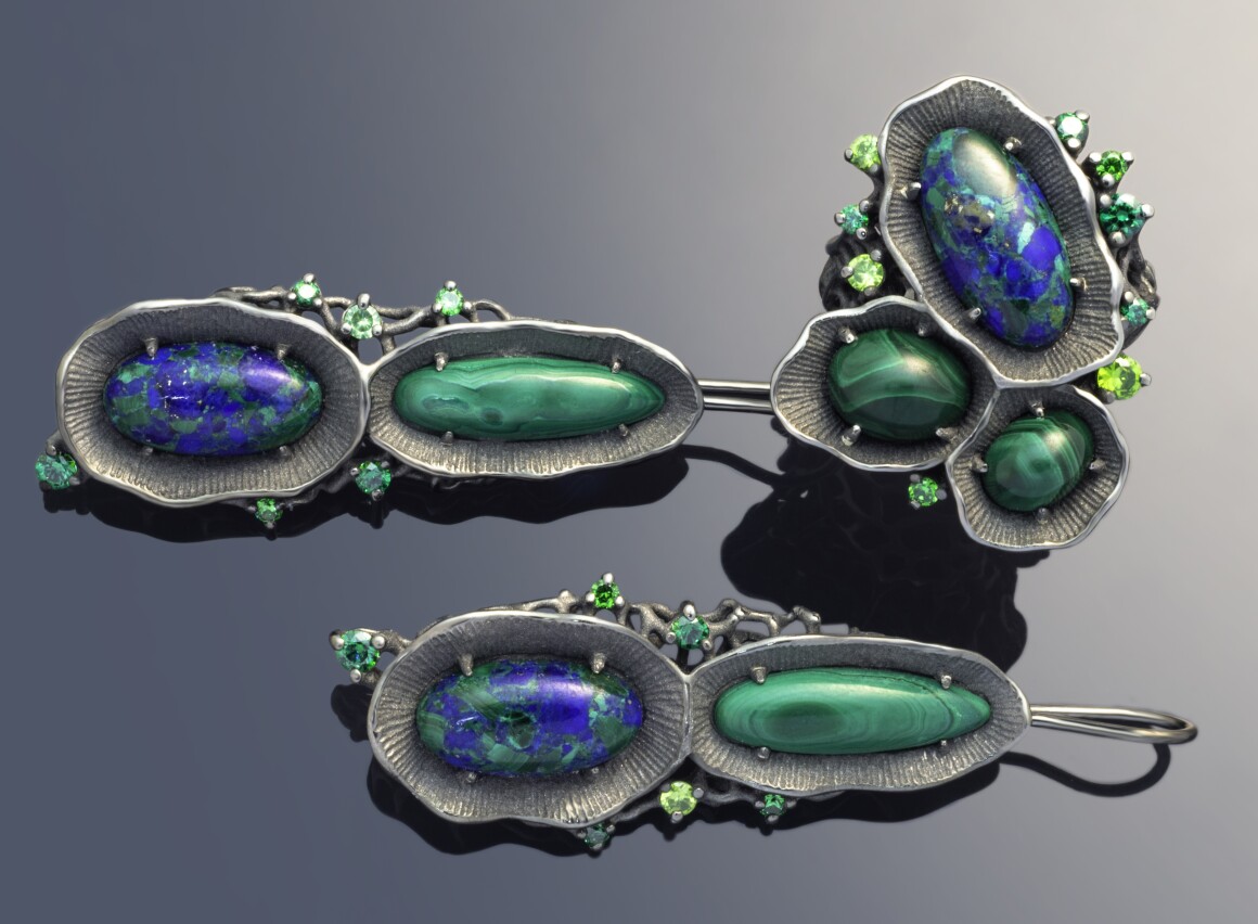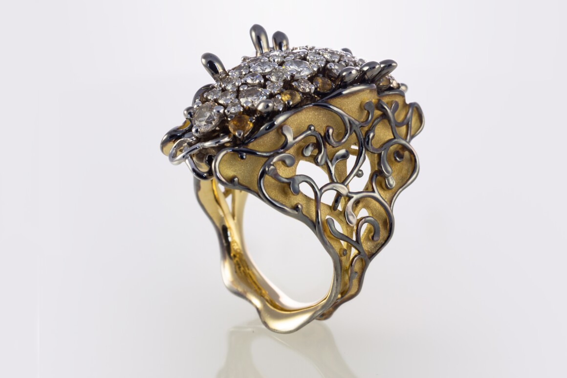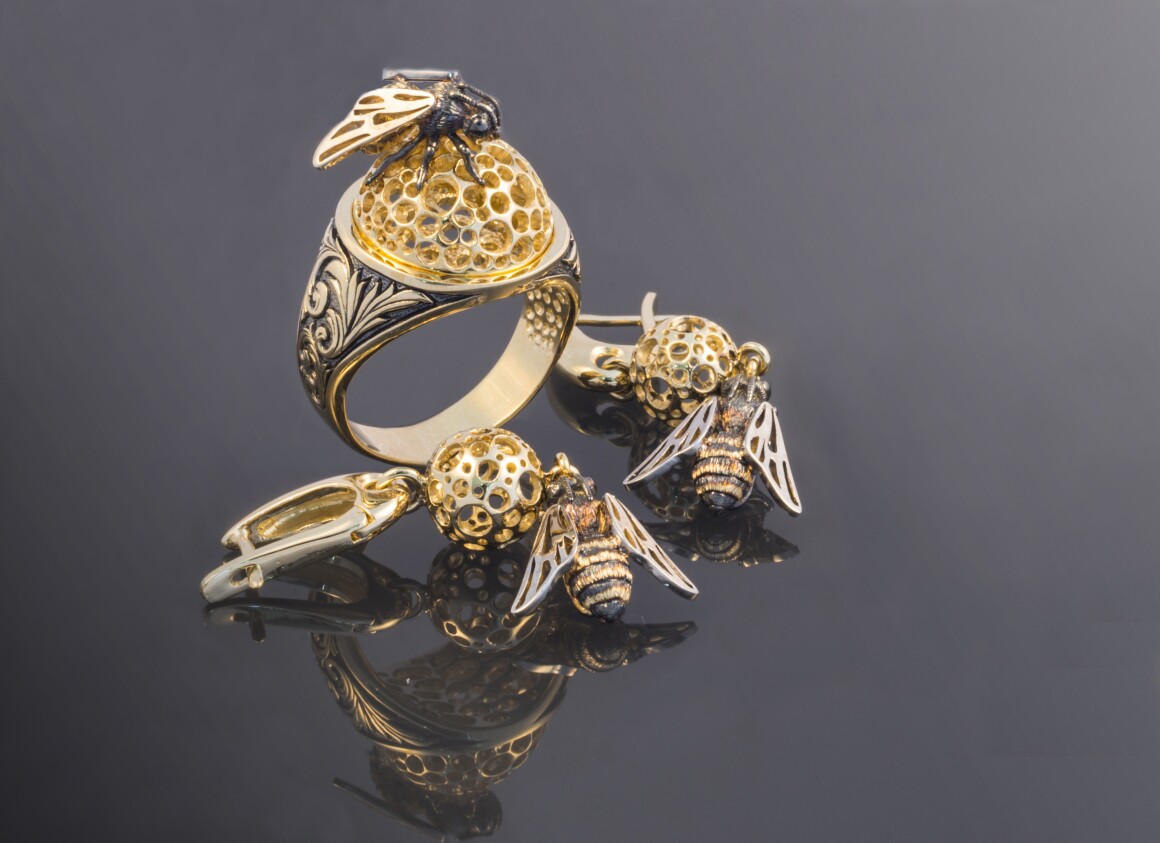 Какие-то изделия моделируются из воска на 3Д принтере, какие-то вырезаются из него же вручную, художником, какие-то на точном фрезерном станке (чаще всего в одном изделии применяются разные виды работ). А только затем отливаются в металле.
